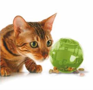 Slimcat ist ein Plastikball, der mit Trockenfutter